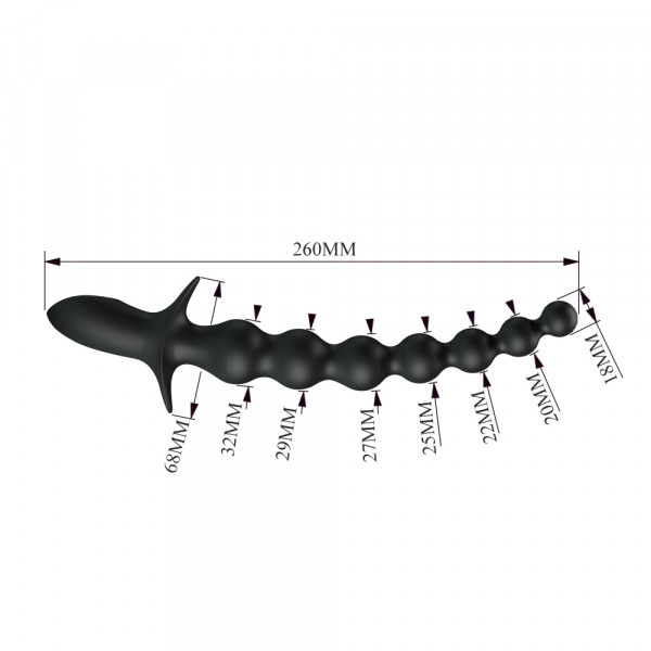 Стимулятор выполнен в виде елки состоящей из 7 шаров различного диаметра с поэтапным увеличением. Форма девайса гарантирует плавное и деликатное введение без дискомфортных ощущений, а надежный ограничитель в виде лодочки идеально фиксирует елку внутри