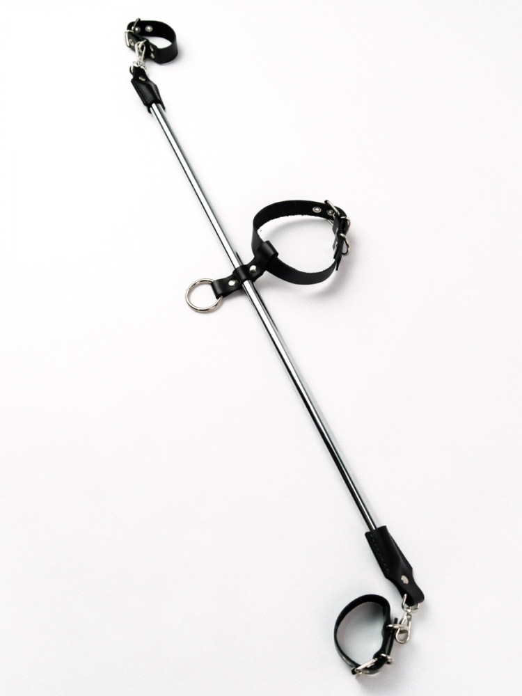Большая металлическая распорка с тремя точками фиксации. Ошейник из натуральной кожи и регулируемые наручники позволяют зафиксировать партнера именно в той позиции, в которой необходимо!